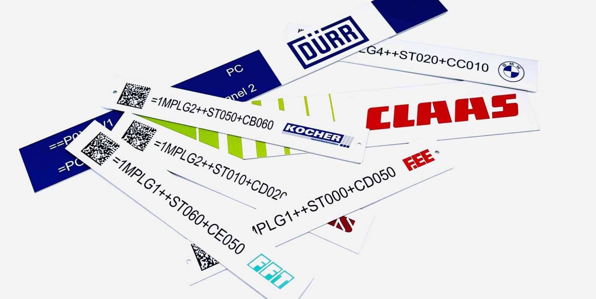 Mit einer Kabelbeschriftung können Sie Kabel oder Leitungen in elektrischen Anlagen oder Maschinen eindeutig zuordnen und sofort erkennen, welche Funktion diese besitzen. Zudem werden sie in hydraulischen Systemen für Schläuche oder Rohre verwendet.