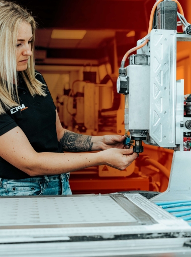 Wir fräsen sowohl die Bohrungen, das 3M auf der Rückseite, als auch die magnetischen Labels.